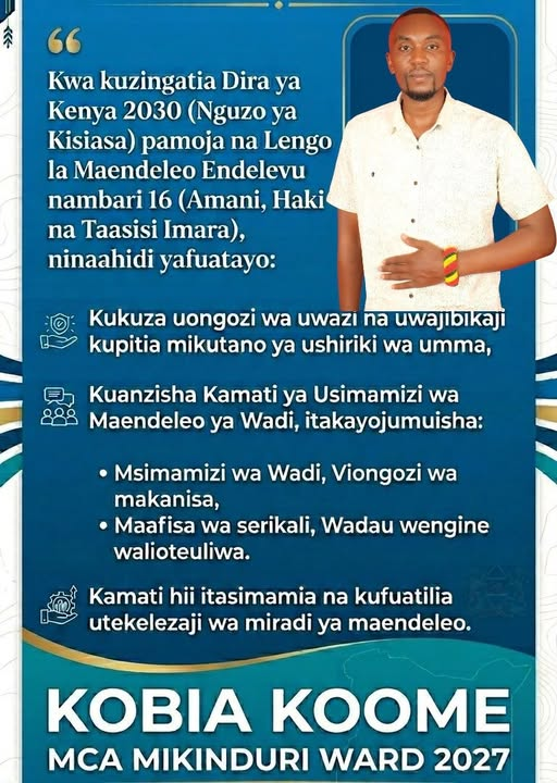 The aspiring MCA emphasized that his leadership will focus on improving livelihoods, enhancing service delivery, and ensuring that development initiatives directly benefit residents at the grassroots level.