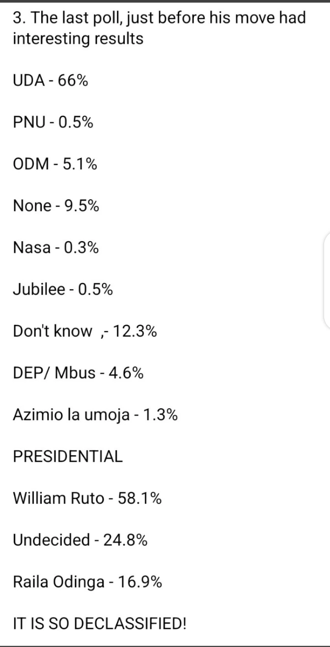 The results shown a clear loss for Azimio and Mbus party. He further claimed that the last poll just before the move had interesting results.