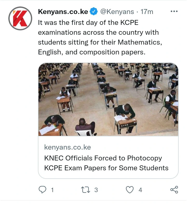 Reports indicate that officials overseeing the examinations at Lugari Primary School were forced to photocopy the question papers for 23 Pupils whose question paper did not come as they were unregistered.