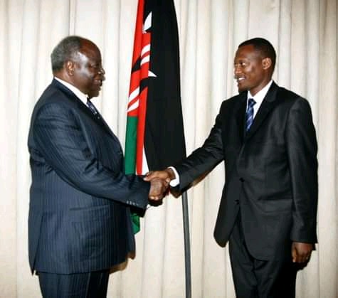 Retired President Mwai Kibaki with his then bodyguard George Nderitu ( Photo Courtesy)