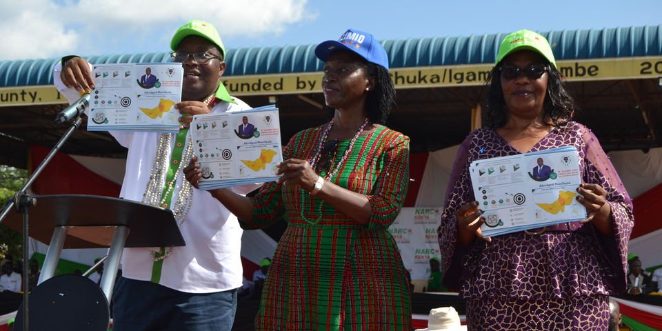Dr Kibunjia, who is contesting on Narc Kenya, made the announcement Saturday at the county headquarters during a political rally attended by the party leader Martha Karua. He is the first among aspirants in the county to name his running mate and unveil a manifesto.