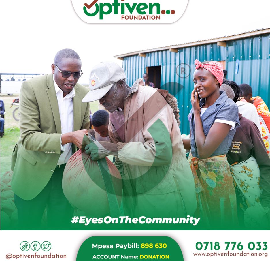 Speaking during the exercise, Optiven Foundation Chairman and Trustee George Wachiuri urged well-wishers to exercise humanity by donating food to those affected across the Country.