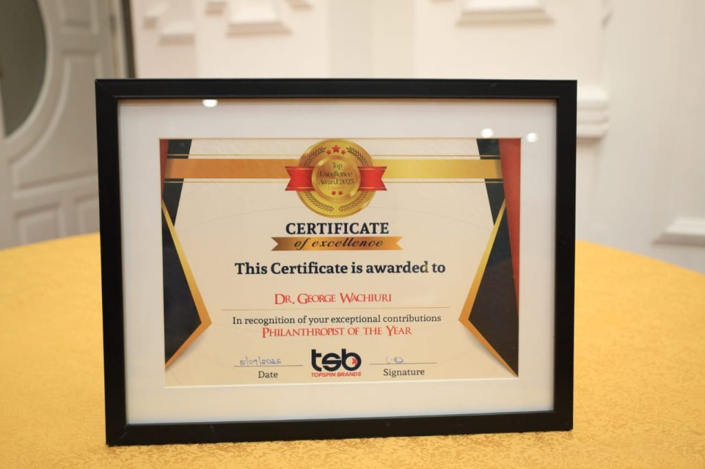 Optiven Group Chief Executive Officer, Dr. George Wachiuri, has been awarded the Philanthropist of the Year 2025 by the Top Excellence Awards.