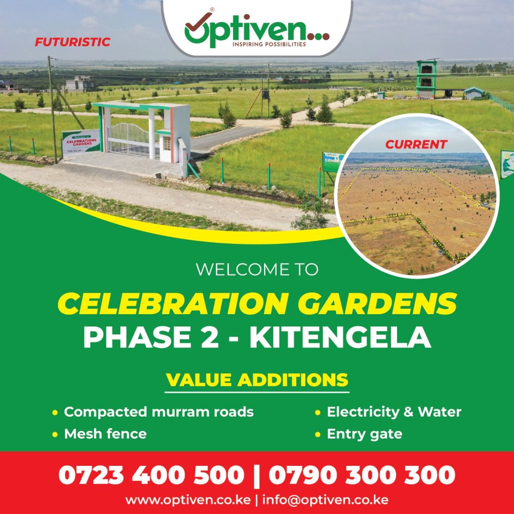 Leading real estate company Optiven has launched Celebration Gardens Phase 2, a three-star gated community in Kitengela, after the huge success of its first phase.