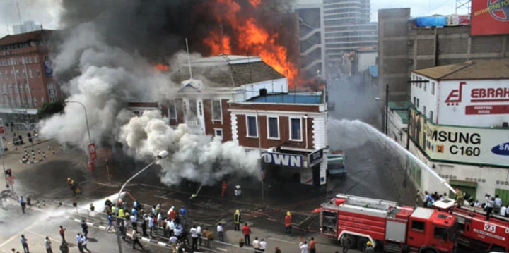 A building on fire in Nairobi CBD. [Photo: Courtesy]