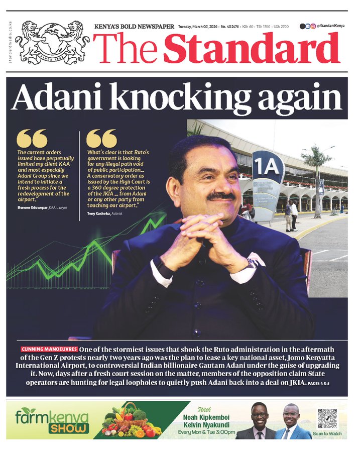 Political commentator Tony Gachoka has publicly criticized The Standard Media Group over its coverage of the ongoing High Court case challenging the proposed takeover of Jomo Kenyatta International Airport (JKIA) by India’s Adani Group.