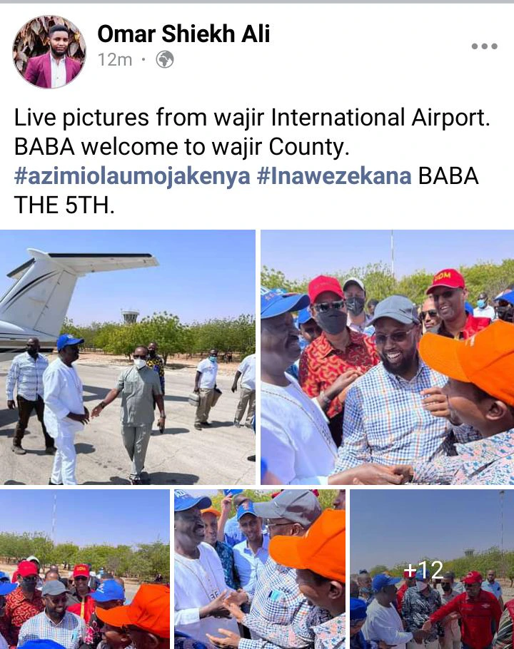 Former prime minister Raila Odinga has already landed at Wajir airport in North Eastern region ready for his Azimio La Umoja rallies in Wajir county. The former prime minister and his entourage is scheduled for series of rallies in the county.