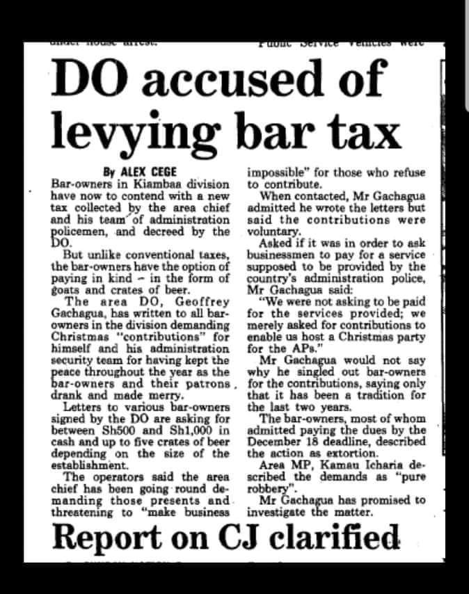 Daily Nation’s article about his extortion in Kiambaa in 1990s.