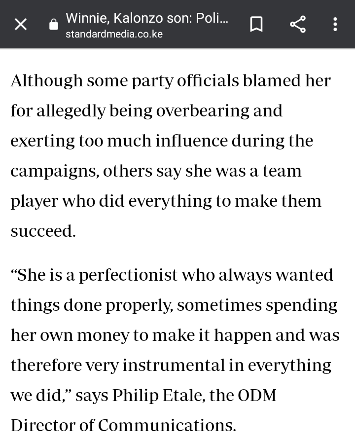 Winnie has openly admitted that she was fully involved in her father’s campaigns, which has been echoed by ODM’s Communication boss Philip Etale.